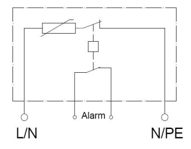 该电涌保护器是专用于PCB板焊接式电涌保护器,模块内部设有失效安全脱扣装置,同时具有失效报警引脚(干接点结构),且产品具备劣化显示窗口